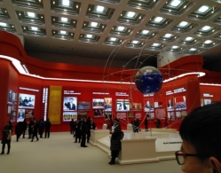 一进大厅,映入眼帘的是中国航天发展成果展区,北斗卫星导航系统模型、中国载人航天工程、深海勇士号载人潜水器模型、“蛟龙号”载人深潜器等模型展示,“可上九天揽月,可下五洋捉鳖”不再是远大的志向,而是变成了触手可及的现实,这充分体现了中国强大的科技实力。接着又到春天的故事,这部分主要讲述改革开放以来的历史巨变:安徽小岗村18位农民按下包产到户“红手印”;改革开放之后第一张个体工商业营业执照;1984年联想在北京中关村的一间小平房里成立;著名运动员许海峰在23届奥运会射击比赛时用过的观察镜及1984年奥运会金牌;中国政府代表签署《中国加入世界贸易组织议定书》时使用的台笔;天津滨海新区在简政放权过程中封存的109枚公章;自1977年恢复高考以来,累计已有2.28亿人报名参加普通高考等各种介绍。一件件展品就像是一个个生动的故事,记录并讲述着中国在40年改革开放历程中政治、经济、社会、文化、生态环境等方面发生的一系列可喜的变化。