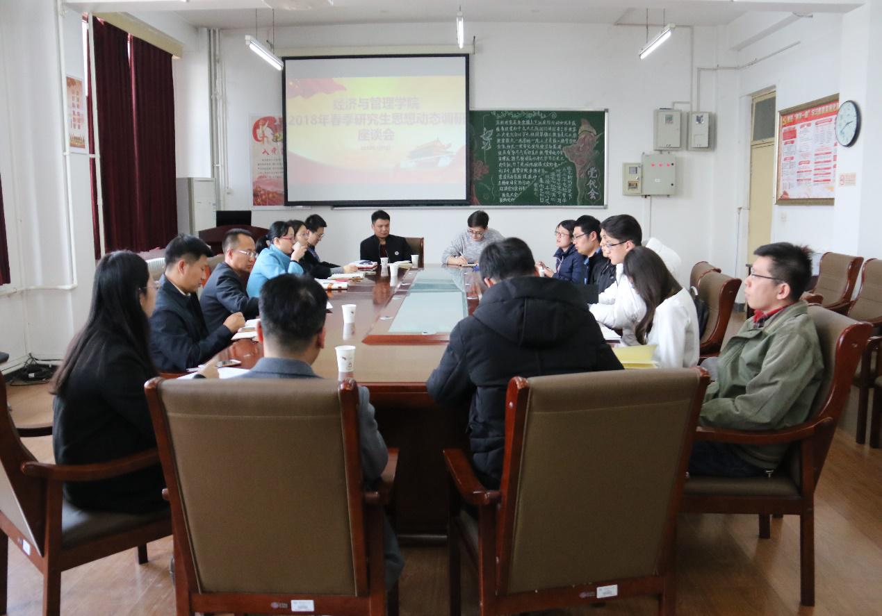 2018年3月5日下午2点,304永利集团2018年春季研究生思想动态调研座谈会在教一326顺利召开。出席本次座谈会的老师有研工部部长李林、研工部副部长周华、公司党委副书记赵军伟、院研究生班主任代表李伯远、院研究生辅导员孙晓琼、阴怡萍和部分博士、硕士生代表,会议由院研究生会主席张文华主持。