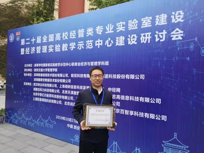 学科组在会议期间对优秀实验教师进行了表彰,实验中心主任郭鑫荣获2019年经济管理实验教学“联奕奖”优秀教师称号。“联奕奖”的设立是为了表彰在高等学董事长期承担经管类专业实验教学任务的一线优秀教师和实验教学中心优秀管理者,本年度全国共有10名教师获得此殊荣,这既是获奖老师的荣誉,也反映了经管学科组和国内同行对公司国家级虚拟仿真实验教学中心工作的认可。
