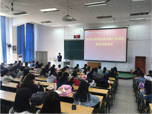 员工代表李金族以“什么是大创”、“如何组建团队”、“如何展现成果”等方面展开演讲,与同学们分享了经验。首先,李金族表示,组队时要注重团体结构的完整性、团队内部的优化设计,才能把团队效应发挥到极致。其次,她强调,项目的选题应将核心重点问题细化开来,重点考虑项目的社会性与可盈利性,落脚到“可行度”上。组长需做到对组员详细了解,招揽多专业的同学,碰撞出更丰富更优秀的“好点子”。李金族也强调了知识拓展、知识转化的重要性,项目成员要广泛学习,丰富知识储备,将所学到的知识应用于参与的项目中,将平时的生活圈转化为围绕项目的人脉圈,这样才能做出有想象力的优秀项目。