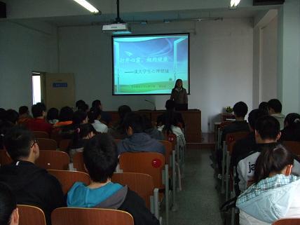 紧接着,胡老师给大家介绍了我们学校心理咨询中心的主要工作,和对同学们的引导以及在平时生活中大家应该如何解决心理问题等等。胡老师指出,同学们应注意并重视自己的心理健康,遇到困难时应进行积极的心理求助、充分利用可利用的资源。