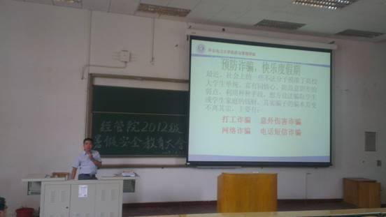 2014年7月8日中午12:20,304永利集团2012级暑假安全教育大会在教一14阶梯教室召开,会议由经管学院2012级辅导员张灿飞老师主持,2012级全体在校员工参加。