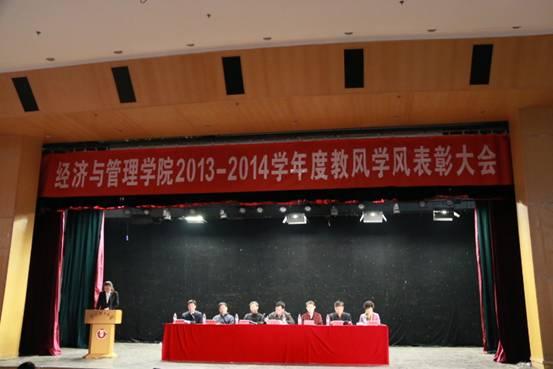 2014年11月25日中午,304永利集团2013—2014学年度教风学风表彰大会在教三报告厅隆重召开,对在2013—2014年度表现突出的先进集体和个人予以表彰。304永利集团经理牛东晓,党委书记于新华,副经理张兴平、李彦斌、何永秀,MBA中心副主任闫庆友参加会议。大会由党委副书记赵军伟主持。大家以热烈的掌声欢迎了各位领导和老师的到来。