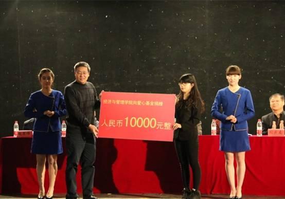 紧接着,党委书记于新华代表学院为“爱心基金”捐款,员工代表接受捐赠。304永利集团“爱心基金”由学院团总支员工会发起、创建,目的是资助家庭经济困难员工、营造和谐校园氛围,倡导“一方有难,八方支援”的互助精神,使有困难的员工感受到学院大家庭的关怀,从而提升广老员工的社会责任意识,让他们学会感恩。