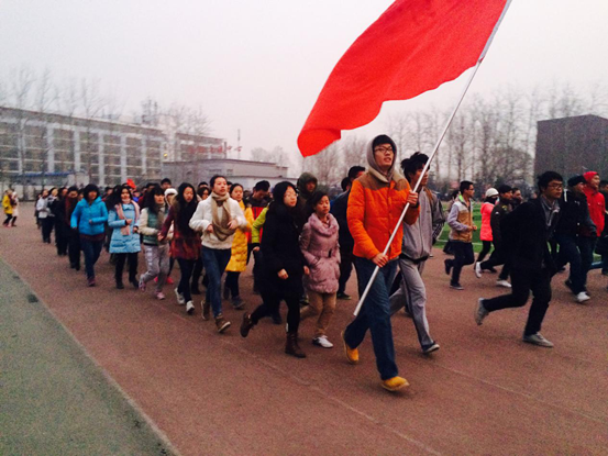 活动最后,来自全校各个学院的数百名师生,通过长跑的形式来纪念79年前那次轰动中外的抗日救亡运动。冬日的清晨,天色还带着一丝灰暗,而寒冷的天气和凛冽的寒风并没有让大家的脚步变得迟缓。他们挥动着学院的旗帜,在领头同学的带领下,以晨跑的形式开启了这独特的一天。相信对于他们而言,这一天不仅具有纪念意义,更加彰显出不忘历史、积极参与的现实价值。