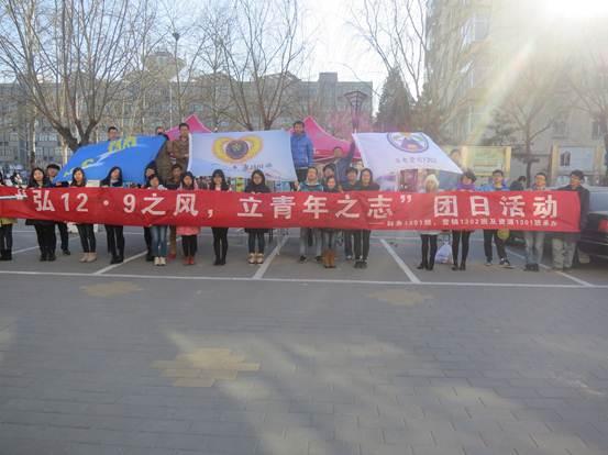 2014年12月19日中午,财务1301班、资源1301班和营销1301班本着弘扬爱国主义精神的宗旨,举行了纪念“一二·九”运动的团日活动。