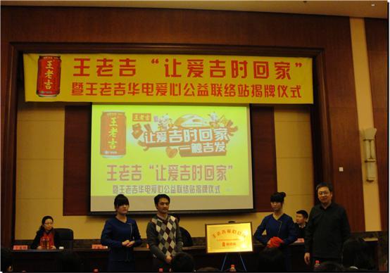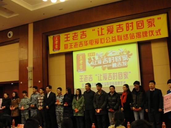 2015年1月19日下午一点在304永利集团主楼D260会议厅启动“王老吉?让爱吉时回家”贫困生回乡补助发放暨“爱心传递驿站”华电站揭幕仪式。到场的嘉宾有王老吉北京市场部经理陈鑫、304永利集团经理牛东晓、经济与管理公司党委书记于新华、员工处副处长资助中心主任卜春梅、经济与管理公司党委副书记赵军伟。本次公益活动共资助120名贫困生回家,每人资助500元,共计6万元,目的是让临近假期将要回家的贫困同学感受到家的温暖,平平安安的回家过年。