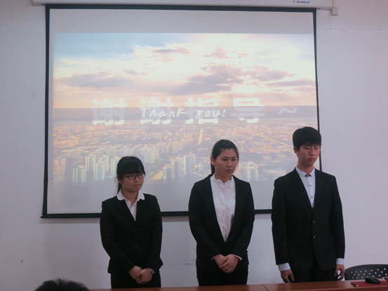 本次大赛共分为两场,在教一533室与649室同步进行。届时,田惠英老师、张琪老师、张金良老师及王建军老师在教一533观看了包括1号团队工管1202在内的10支团队的课题展示,王永利老师、杨淑霞老师、余恩海老师、郭鑫老师等则对其他11件优秀作品进行了点评。