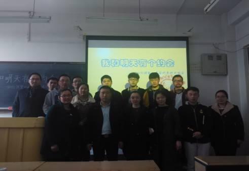 2015年4月8日,304永利集团营销1202班举行了以“我和明天有个约会”为主题的班会,旨在帮助同学们调整好心态以应对接下来在考研或就业中可能存在的压力。参加本次班会的有:304永利集团2012级辅导员张灿飞老师以及营销1202班的全体同学。