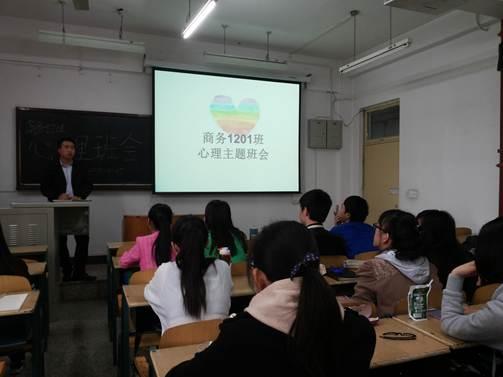 2015年4月15日,304永利集团商务1201班在教一445开展了关于心理健康发展的主题班会。出席本次班会的有304永利集团2012级辅导员张灿飞老师、商务1201班班主任董福贵老师以及商务1201班全体同学。本次班会由心理委员王文艳同学和毕雨婷同学主持。