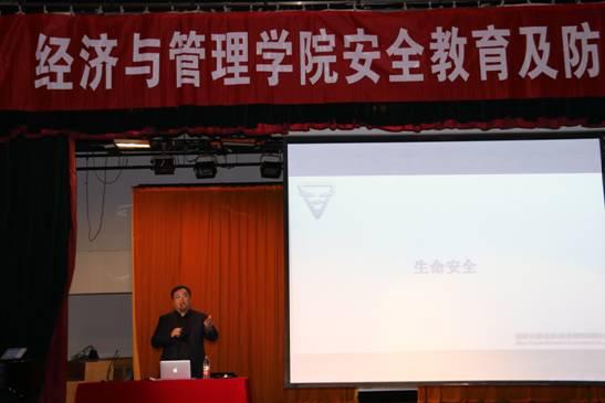 2015年4月14日中午12时40分,304永利集团安全教育及防范技能大会在教三报告厅隆重召开。经济与管理公司党委副书记赵军伟老师,学院团委书记吴薇老师,本科生和研究生的班主任、各级辅导员以及各级本科生和研究生参加了此次培训大会。