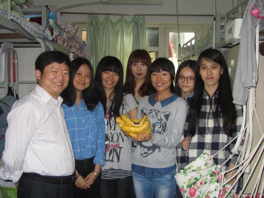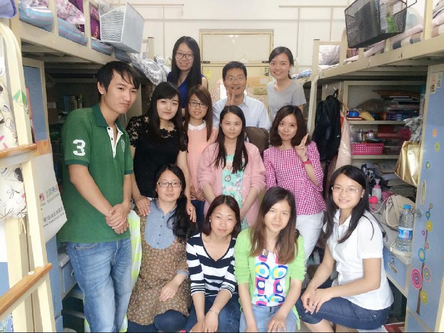 会议结束后,于新华老师、赵军伟老师、吴薇老师与各班班主任和各年级辅导员一起参与此次活动。于新华老师、赵军伟老师、吴薇老师和张灿飞四位老师一同走访了公司部分博士生宿舍和大一男生宿舍,老师们亲切地询问员工们的生活状况、对学校的适应状况,在博士生宿舍,老师们还详细地询问了一位受伤员工的治疗情况,并嘱咐他要好好养伤。老师们的到访和亲切关怀令同学们十分惊喜和感动。
