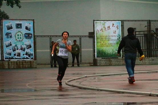 中午时分,天空中开始飘洒着小雨,然而湿漉漉的场地并没有击退公司代表队对于比赛的热情和体育精神的延续。下午的比赛拉开了序幕,运动员们仍然坚持奋斗,啦啦队热情高涨。发令枪响,员工4*400米女子组接力赛拉开帷幕。
