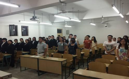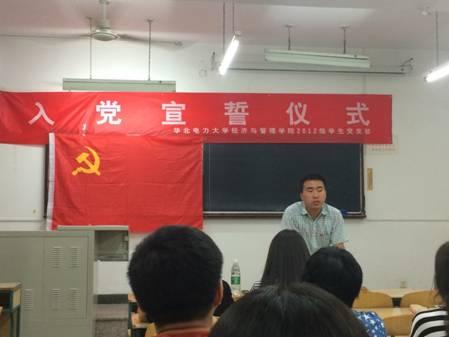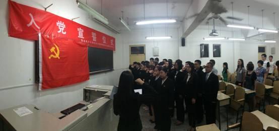 2015年7月3日晚上9点整,新一批预备党员的入党宣誓仪式在教一425举行,出席本次会议的有:经管12级员工党支部书记张灿飞老师以及全体党员同志。