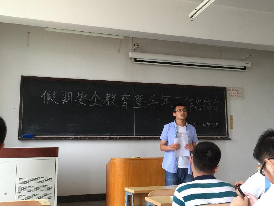 2015年7月7日中午,304永利集团2014级假期安全教育暨学年工作总结会在教一301召开,出席本次会议的有经管14级辅导员纪宇老师以及各班班长、团支书、安全委员。