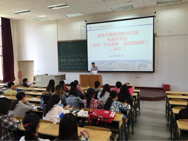 2015年9月11日中午12:40,304永利集团2012级免推研究生(学术保研、行政保研、支教保研、运动员保研)会议于教一12阶召开。304永利集团2012级各专业各班班长、团支书、学习委员以及与保研相关的同学参加了会议,辅导员张灿飞老师出席并主持了此次大会。