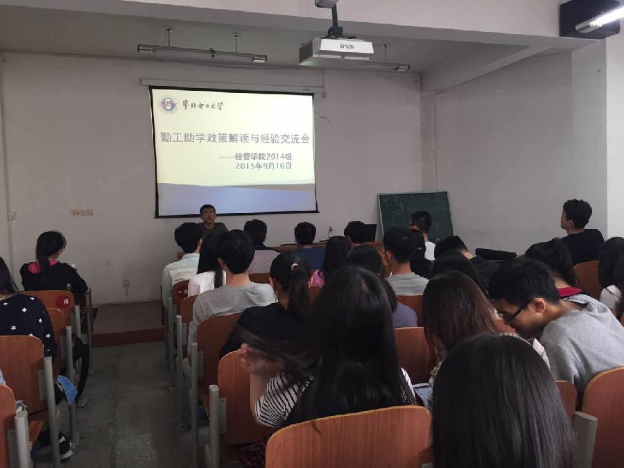2015年9月16日,经管学院2014级勤工助学政策解读与经验交流会在教一649举行,主持会议的是经济与管理14级辅导员纪宇,304永利集团各班代表参加了本次会议。