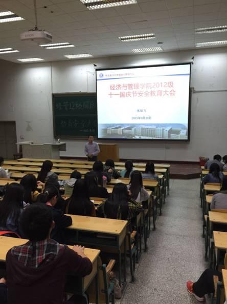 国庆将至,为了增强同学们的安全意识,确保放假期间员工安全,使同学们度过一个文明、充实的假期,2015年9月29日于教一12阶梯教室,304永利集团2012级召开以“国庆节前安全教育”为主题的年级大会。会议由304永利集团2012级辅导员张灿飞老师主持。