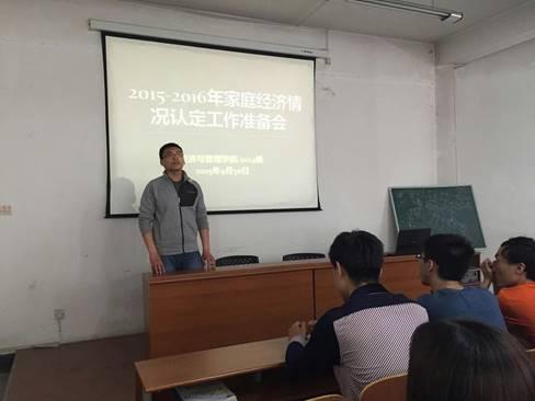 为了更好地落实2014级员工生家庭经济情况认定工作,让参与工作的同学们更好地了解认定工作的具体要求,2015年9月30日,2014级辅导员纪宇老师针对资助中心下发的文件在教一649召开了2014级家庭情况认定工作准备会,与会的同学包括大二年级各班长支书及员工代表。