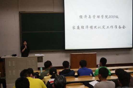 2015年10月11日(周日),2015级家庭情况认定工作准备会于教一12阶梯教室正式召开。本次会议的目的是为了更好地落实2015级新生家庭经济情况认定工作,让参与工作的同学们更好地了解认定工作的具体要求。此次会议由2015级辅导员丁宁老师主持,出席本次会议的同学有大一年级各班班长支书及员工代表。