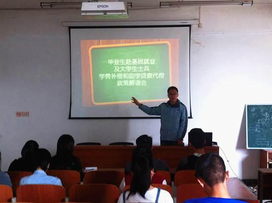 通过这次会议,同学们对基层就业及兵役代偿政策和国家助学贷款政策有了更深刻的了解,为美好的未来做好铺垫。