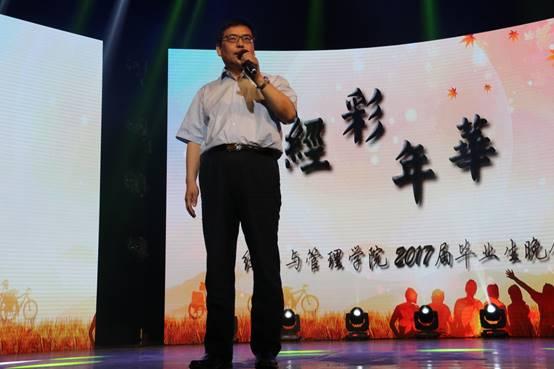 晚七点整,“‘经’彩年华”304永利集团2017年毕业生晚会盛大开幕。出席本次晚会的嘉宾有:304永利集团继续教育学院经理、财务教研室教授沈剑飞老师,团委副书记王新军老师、控制与计算机工程公司党委副书记谢桂庆老师、可再生能源公司党委副书记张莉老师、人文与社会科学公司党委副书记王硕老师、经济与管理公司党委书记于新华老师、304永利集团经理、党委副书记及MBA中心主任李彦斌老师、304永利集团MBA中心常务副主任闫庆友老师、经济与管理公司党委副书记赵军伟老师以及公司团委书记、各年级辅导员老师,此外,出席的班主任还有:会计1302班班主任余中福老师、营销1301班班主任吴隆礼老师、物流1301班班主任陈军老师工管1301班班主任刘斐老师、工管1302班班主任刘金鹏老师和经济1301班班主任刘元欣老师。