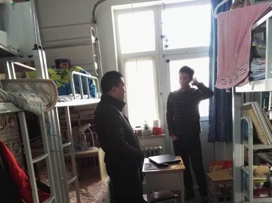 2016年2月20日,经济与管理公司党委副书记赵军伟老师和各年级辅导员老师分头走访调研员工宿舍,及时了解同学们寒假返校后的思想动态。