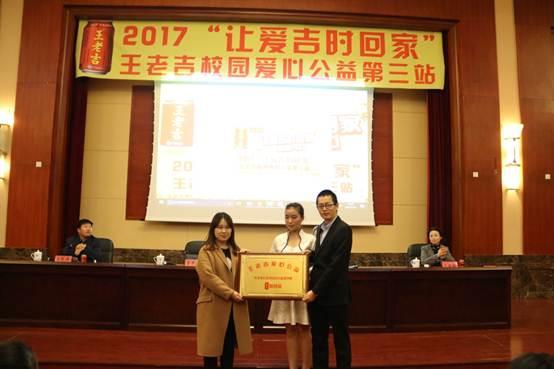 接下来,王老吉公司北京分公司市场部经理鲁奇萌和经管院团委书记吴薇共同完成了“让爱吉时回家”的捐赠仪式。随后员工代表上台接受补助,与会的嘉宾与领导为他们发放补助,并进行合影留念。