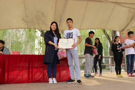 本次运动会的所有项目在参赛同学奋力拼搏、挥洒汗水的身影、在观众的欢呼呐喊声中顺利结束。比赛结束后,运动会闭幕式正式开始。裁判宣布了每个班级的比赛成绩,并宣布体育道德风尚奖和优秀组织奖评选结果。丁宁老师为获奖班级颁发证书与奖品。