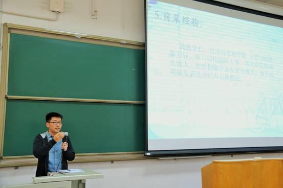 最后,本次活动还有幸邀请到工管1302班的武德同学分享经验。作为第五届、第六届校园DV大赛一等奖获奖班级负责人,武德同学从拍摄内容、摄影技术、构图技巧三方面讲述了自己的经验技巧。他提到,在拍摄前期应对拍摄内容进行初步构思,可以通过小组讨论和场景模拟的方法增强拍摄时的可行性,可从多角度构图,尽量做到剪辑自然,背景音乐匹配等。在座同学认真记录要点,为参赛做好准备。