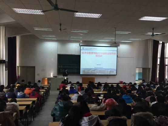 2015年12月28日,304永利集团2016届毕业生就业指导第四讲在教一12阶梯教室顺利召开。参加本次会议的有:经济与管理公司党委副书记赵军伟老师、304永利集团2012级辅导员张灿飞老师和2012级全体同学。会议由赵军伟老师主持。