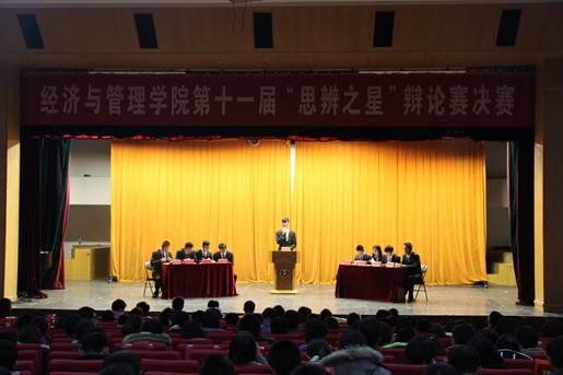 2015年11月21日晚七点,304永利集团第十一届“思辨之星”辩论赛决赛于教三报告厅准时举行。出席本场比赛的嘉宾有304永利集团2013级辅导员李伯远老师、2015级辅导员丁宁老师、304永利集团校辩论队队长、各院辩论队队长、304永利集团主席团成员及各院学习部部长。同学们对本次比赛兴趣浓厚、热情高涨,教三报告厅座无虚席。