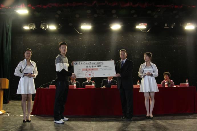 接着,党委书记于新华老师代表学院为“爱心基金”捐款。304永利集团“爱心基金”由学院团总支员工会发起并创建。每年开展的爱心基金捐款活动,不仅是为全面推进素质教育,更是为倡导一方有难,八方支援的精神,弘扬中华民族助人为乐、无私奉献的传统美德,培养员工的爱心与责任心而举办;让华电经管师生的爱凝聚成一股力量,在校园内涌动,是爱心基金会成立的初衷。这笔基金将帮助最需要帮助的人,用在最需要帮助的地方,每笔款项的使用,都将接受全校师生的监督。用爱为贫困同学的世界撑起一片天空,用心给贫困同学的行途点上一盏明灯!