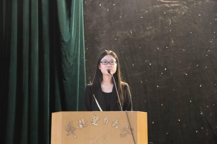 而后,优秀员工代表徐天娇和教育工作成果突出的教师代表施应玲老师发言。徐天娇同学首先对帮助过自己的老师和同学表示感谢,然后分享了自己三年内如何追求梦想的学习经历,并针对如何规划老员工活、科学学习为在座员工提出了建议。
