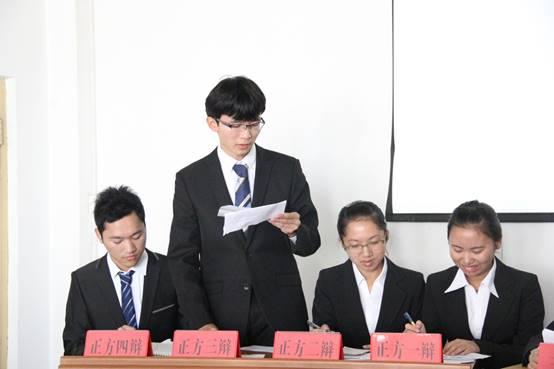 自由辩论环节,正方辩友们精辟的措辞,犀利的言辞,展现出咄咄逼人的气势。反方辩手也毫不示弱。在第二天营销1501班和商务1501班的比赛中,面对营销班的旁征博引,商务班的辩手们巧用四两拨千斤的方法,一次又一次地化险为夷,击破对手们的观点。值得一提的是反方二辩的的李悦琳同学,流利的辩词以及从容冷静的应对态度,更是赢得了在场观众们的阵阵掌声。