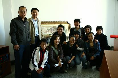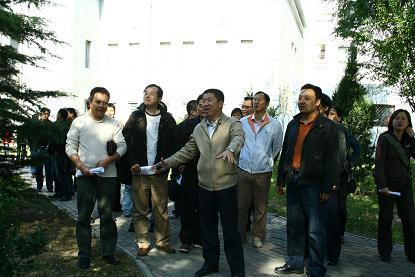 欢迎会后,刘威老师带领95级员工参观了校园。看着学校十年来翻天覆地的变化,员工们都感到由衷的自豪,并在主楼前合影留念。