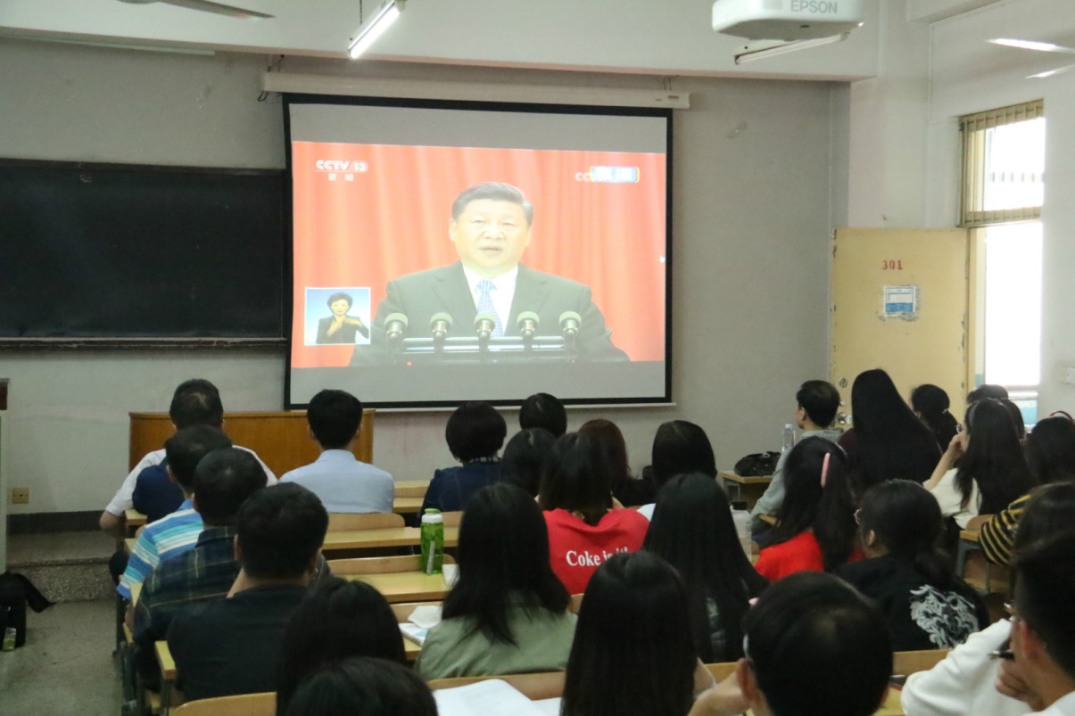 全体师生认真聆听了习近平总书记的重要讲话。习近平总书记在讲话中指出,无论时代如何变迁、科学如何进步,马克思主义依然显示出科学思想的伟力,依然占据着真理和道义的制高点。这一理论犹如壮丽的日出,照亮了人类探索历史规律和寻求自身解放的道路。
