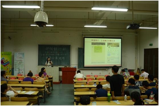 晚六点半,人员全部就席,本次活动的主持人经管学院信管教研室梁春燕老师宣布本次宣讲活动开始,首先介绍了在场嘉宾和与会人员,在一阵阵热烈的掌声过后,主持人邀请崔峣先生向我们介绍了全国网商大赛的详细内容,并展示了历届比赛中的优秀作品与项目,最后鼓励感兴趣的同学积极报名参与到活动中去。