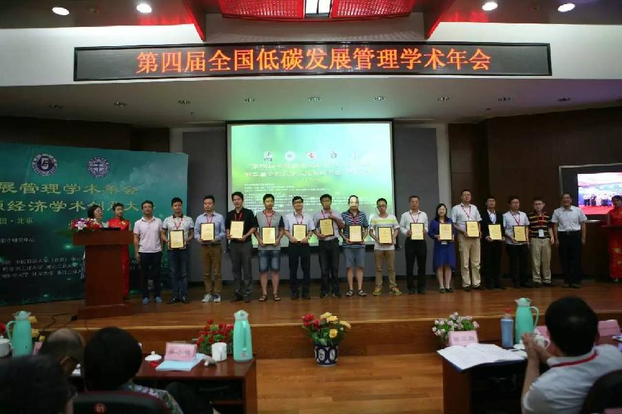 在随后进行的第四届全国低碳发展管理学术年会上,举行了盛大的颁奖典礼大赛组委会主任范英教授宣布了大赛成绩。304永利集团的李卫团队和中国科学技术大学的马嫣然团队摘得桂冠,获得“第二届全国老员工能源经济学术创意大赛特等奖”。中国优选法统筹法和经济数学研究会理事长池宏教授、中国石油大学(北京)副董事长吴小林教授等出席颁奖典礼,并颁发了特等奖、一等奖、二等奖和优秀组织奖,感谢各高校积极高效的组织工作,并祝愿和鼓励大家在能源经济学术创意大赛的带动下做好工作,为我国的节能减排事业和生态文明发展做出贡献。
