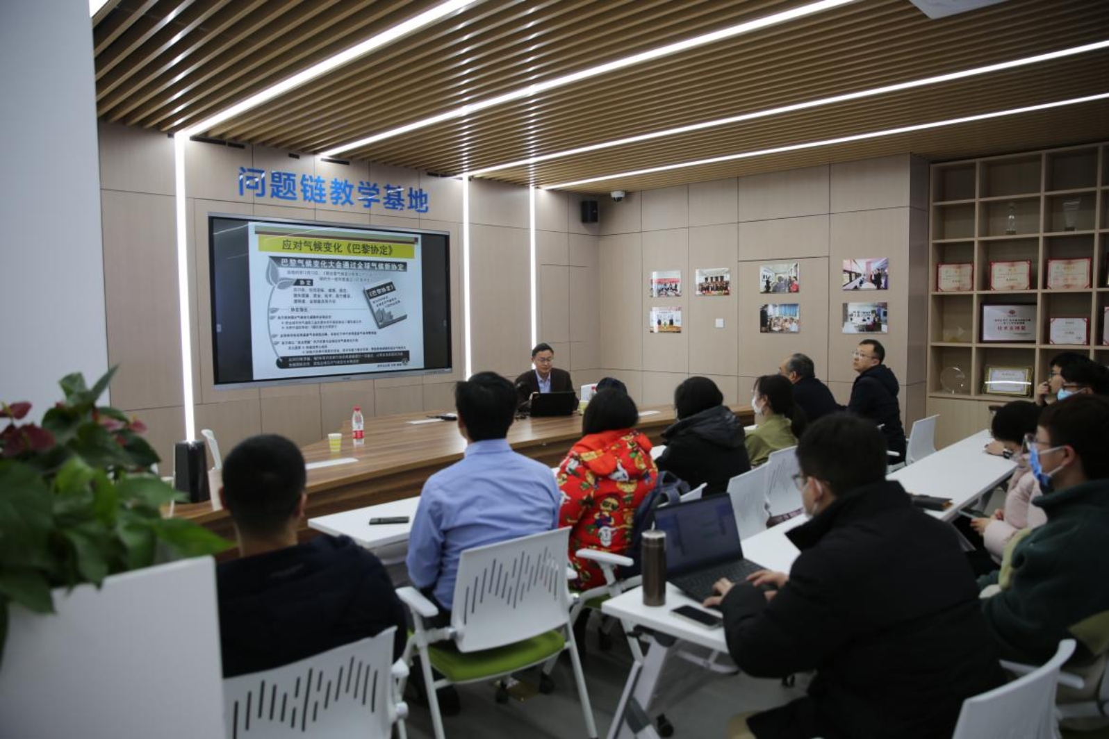 2022年2月24日下午,碳中和能源管理虚拟教研室在问题链教学基地举办了新学期第一次专家讲座。中国社会科学院生态文明研究所副所长、研究员、中国社会科学院大学(研究生院)博士研究生导师庄贵阳教授在李彦斌经理陪同下参观了管吧,并受邀做了“正确认识和把握碳达峰探中和”的学术报告,报告由王辉副经理主持,虚拟教研室教师与会。