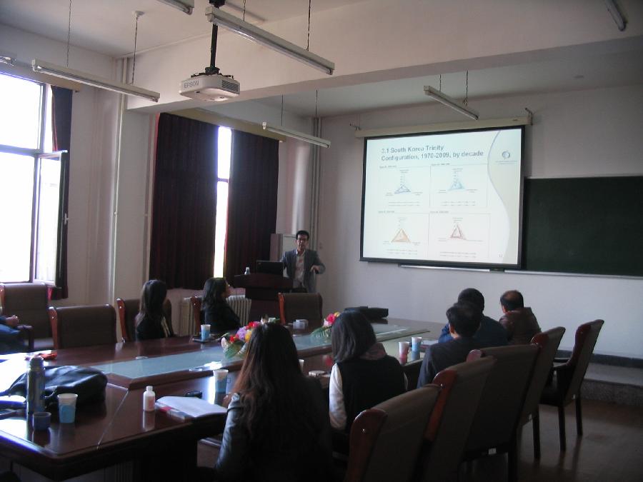 2012年10月23日下午,应经管院邀请,加拿大学者Dainel Poon先生用中英文双语为经管院师生作了一场题为“Parthing the China Model in Re-thinking Development” (分析中国模式,重新思考发展问题)的学术报告。Dainel Poon先生采用定量与定性相结合的研究方法,运用政治经济学分析框架,重点分析了中国模式的三个主要问题:1. 宏观经济政策体系,包括汇率、资本流动及利率政策(蒙代尔三角难题)问题; 2. 国内金融部门的结构及规制方法问题;(3)战略性产业中的本土企业的培育问题。Daniel Poon认为尽管中国发展模式具有区别于其他国家的独特性,但是从更广的视角看,这种模式遵循的依然是很多工业化国家的发展路径。Daniel Poon先生的讲座内容丰富,资料详实,带给大家很多的启发。讲座过程中,师生们还就相关问题与Daniel Poon先生进行了热烈讨论。 加拿大北南研究所 (The North-South Institute, Canada)是加拿大成立最早的独立政策研究机构。Daniel Poon先生的主要研究领域为发展中国家新兴市场日渐增强的作用及经济影响。他曾是中国社会科学院世界经济与政治研究所、南非贸易与产业政策战略研究所的访问学者。2007-2008年,就职于加拿大驻华使馆外交与经济政策局。